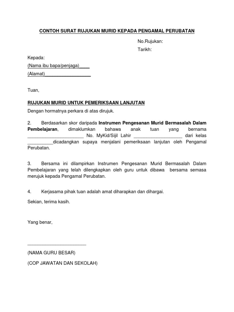 Contoh Surat Rasmi Sekolah Kepada Ibu Bapa