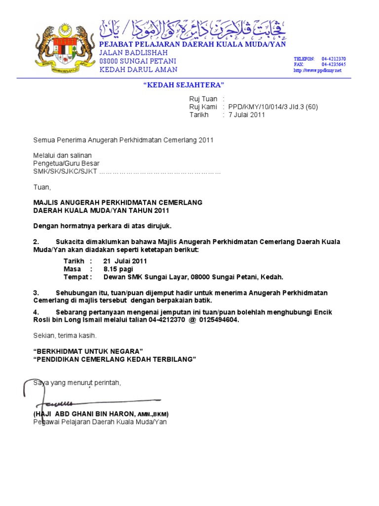 Contoh Surat Rasmi Majlis Anugerah Pelajar Pdf